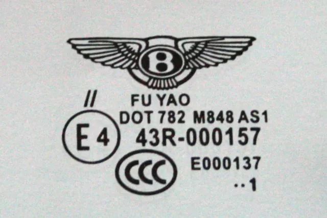 比如这个标签,就说明这是专为宾利配套的汽车玻璃。如果这个标签,出现在了其他品牌的车上,就有问题。同理,如果宾利的汽车玻璃上印着其他汽车厂商的标志,同样是不合理的现象。