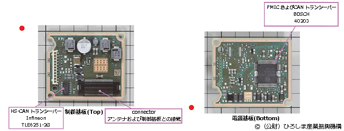 通信区块以英飞凌的High Speed CAN发射器IC[TLE6251-2G]与内置CAN+FlexRay的博世PMIC[40203]为主,具备2套CAN通信系统。