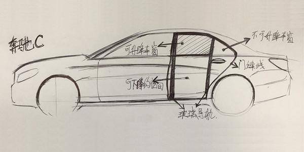 看过奔驰C-Class、E-Class、S-Class后,你会发现奔驰的车型正如提问者所说,后门上的玻璃被分成了两部分。这是为什么呢?一张手绘示意图: