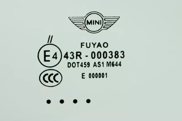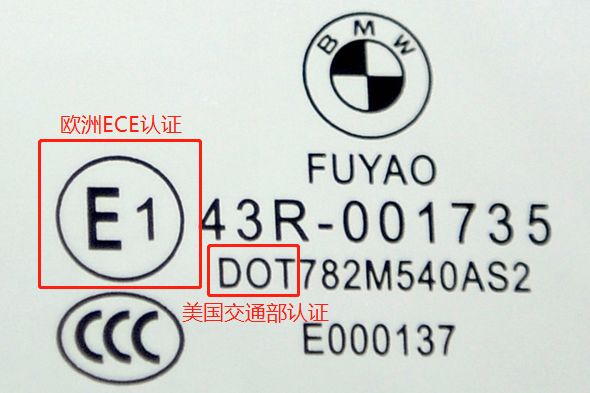 在美国销售的车辆,汽车玻璃就必须通过美国交通部认证,它的前端缩写是DOT ;在欧洲销售的汽车,汽车玻璃必须通过欧洲ECE(Economic Commission for Europe)认证,缩写为E。