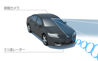Honda SENSING系统由位于前格栅内的毫米波雷达、以及位于挡风玻璃内部上方的单眼摄像头这2种特性不同的传感器构成。毫米波雷达进一步提高了性能,除了对象物体的位置和速度以外,以往难以检测的电波反射率较低的行人也成为了检测对象。此外,单眼摄像头可识别车辆前方约60m范围内的行人和对象物体的属性及大小等,实现更高精确度的识别。