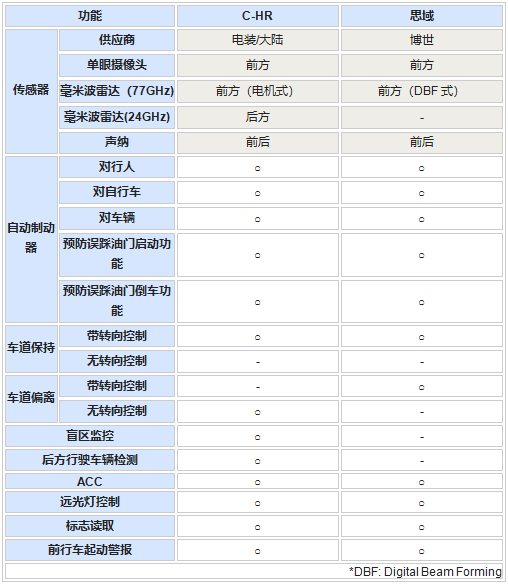 下表对思域的ADAS功能与C-HR的ADAS功能进行比较。