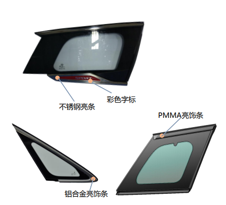 通过单色或者双色注塑,形成高亮外饰件,用于装饰 A / B / C / D 柱,实现车身悬浮式车顶效果。